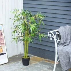 Outsunny Pianta Di Bambù Artificiale In Vaso Da 180cm Per Interni Ed Esterni