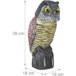 Volete liberarvi dei soliti piccioni e dei piccoli roditori che mangiucchiano gli ortaggi nel vostro giardino o sporcano il balcone? Il gufo spaventerà questi animaletti indesiderati grazie alle sue dimensioni reali e al movimento della testa che rotea con il soffiare del vento. Gli altri animali non potranno che scambiarlo per un vero e proprio gufo! Gli occhioni luccicanti rendono il suo aspetto ancora più reale. Per una maggiore stabilità, potrete riempire il gufo con della sabbia o dei ciottoli attraverso l’apertura situata sulla base. Il simpatico spaventa uccelli è anche una decorazione perfetta in giardino, sul balcone o in terrazza.