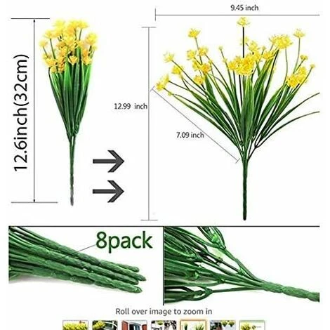 ��Dimensioni��: fiori finti all’esterno, 9,5 di larghezza x 13 di lunghezza. Ogni arbusto ha 7 steli flessibili e foglie generose. Confezione da 8.Poich�� i rami dei fiori sono molto flessibili, puoi cambiare la forma dei fiori in qualsiasi momento in base al tuo umore.Devi solo apportare alcune modifiche per rendere i fiori pi�� soffici.