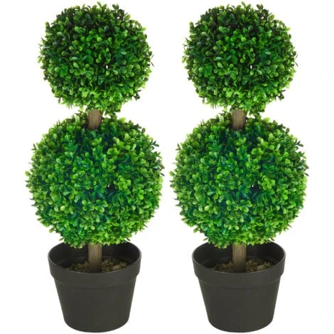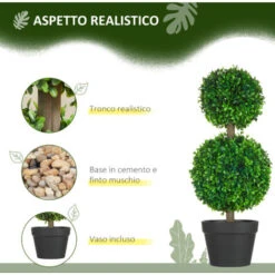 HOMCOM Set Da 2 Piante Di Bosso A 2 Sfere Realistiche Con Vaso Incluso, A Fondo Rinforzato Ed Erba, 60 Cm