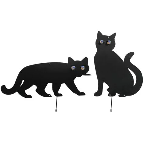 Realizzato in metallo laccato nero, le statuette spaventapasseri sono robuste e durevoli, ideali per l’uso in giardino. Dotati di occhi scintillanti, gli spaventapasseri a forma di gatto sembrano veri.