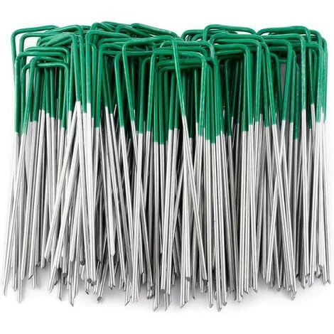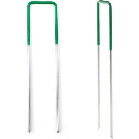 Ogni picchetto è zincato a caldo per una maggiore prevenzione della ruggine. Il rivestimento superiore verde lo rende perfetto per il fissaggio di erba sintetica.