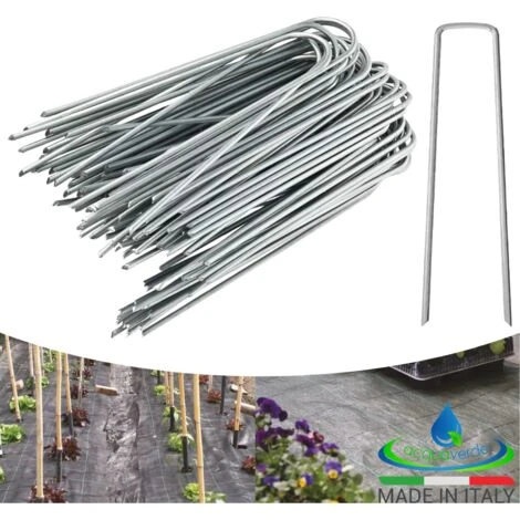 Questi picchetti possono essere impiegate per fissare teli per pacciamatura, tessuti anti erbacce, cavi e pompe al suolo. Grazie alle estremità oblique e appuntite, sarà possibile ancorare senza alcun problema il telo, anche i più spessi senza alcun tipo di problema. Realizzati in acciaio zincato galvanizzato ed inossidabile.