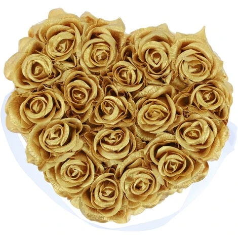 L’elegante scatola con rose è l’evoluzione moderna del classico mazzo di rose che ti permette di godere ogni giorno della vista di meravigliosi fiori. La combinazione tra la scatola bianca a forma di cuore e le 18 rose dorate porta un tocco di eleganza ovunque tu la metta. Il bouquet di rose è ideale come centrotavola per feste speciali, come anniverasi o matrimoni, ma anche come regalo per altre occasioni romantiche o per compleanni – la realizzazione a mano dei fiori offre un piacere duraturo per anni.