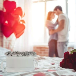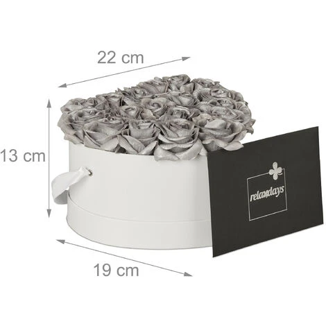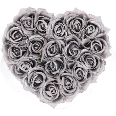 L’elegante scatola con rose è l’evoluzione moderna del classico mazzo di rose che ti permette di godere ogni giorno della vista di meravigliosi fiori. La combinazione tra la scatola bianca a forma di cuore e le 18 rose argentate porta un tocco di eleganza ovunque tu la metta. Il bouquet di rose è ideale come centrotavola per feste speciali, come anniverasi o matrimoni, ma anche come regalo per altre occasioni romantiche o per compleanni – la realizzazione a mano dei fiori offre un piacere duraturo per anni.