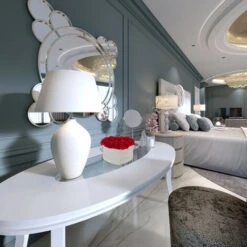 L’elegante scatola con rose è l’evoluzione moderna del classico mazzo di rose, con cui potete godere della vista, ogni giorno, di meravigliosi fiori. La combinazione tra la scatola bianca e le 18 rose in stoffa realistica rende il box un’ attrazione per gli sguardi nella vostra casa. Il bouquet di rose è ideale come decorazione per il tavolo o per il matrimonio, ma anche come regalo per San Valentino o per il compleanno – la realizzazione a mano dei fiori offre un piacere duraturo per anni.
