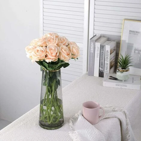 SOEKAVIA Fiori Di Rosa Di Seta Artificiale A Stelo Singolo Realistico Rosa Finta Per La Decorazione Di Composizioni Floreali Di Bouquet Da Sposa, 10 Pezzi (champagne)
