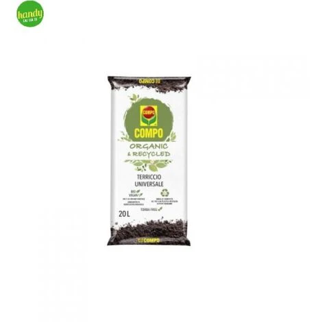 1 sacco di terriccio universale organico COMPO ORGANIC & RECYCLED, consentito in agricoltura biologica, imballo composto all?80% da plastica riciclata di post-consumo, volume: 20 litri.