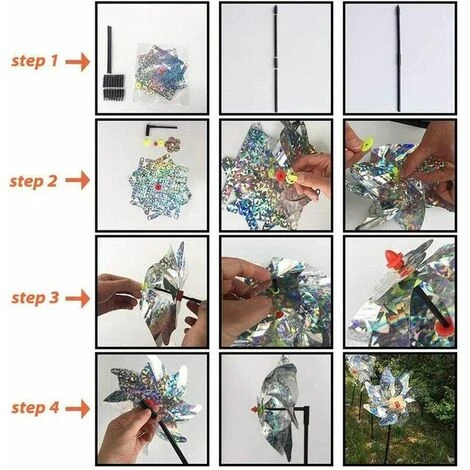 UTILIZZO A LUNGO TERMINE: i mulini a vento girano nel vento e riflettono e schivano la luce che fa prendere dal panico gli uccelli. Anche se esposto al sole o alla pioggia, le proprietà riflettenti vengono mantenute per molti anni.